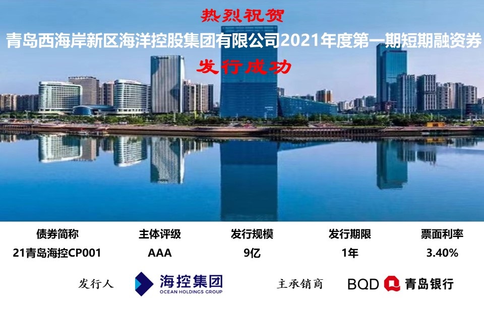 3月2日,??丶瘓F(tuán)成功發(fā)行2021年第一期短期融資券,也是今年新區(qū)首支短期融資券,發(fā)行規(guī)模9億元,發(fā)行期限365日,發(fā)行利率3.40%,認(rèn)購倍數(shù)為2.15倍。