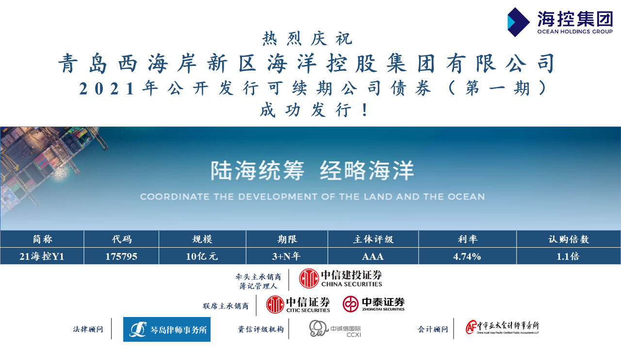 4月20日,??丶瘓F成功發(fā)行新區(qū)首筆公募可續(xù)期公司債券“21??豗1”,發(fā)行規(guī)模為10億元,票面利率4.74%,期限為3+N年期。該筆可續(xù)期公司債券是西海岸新區(qū)國有企業(yè)首筆公募可續(xù)期公司債券。