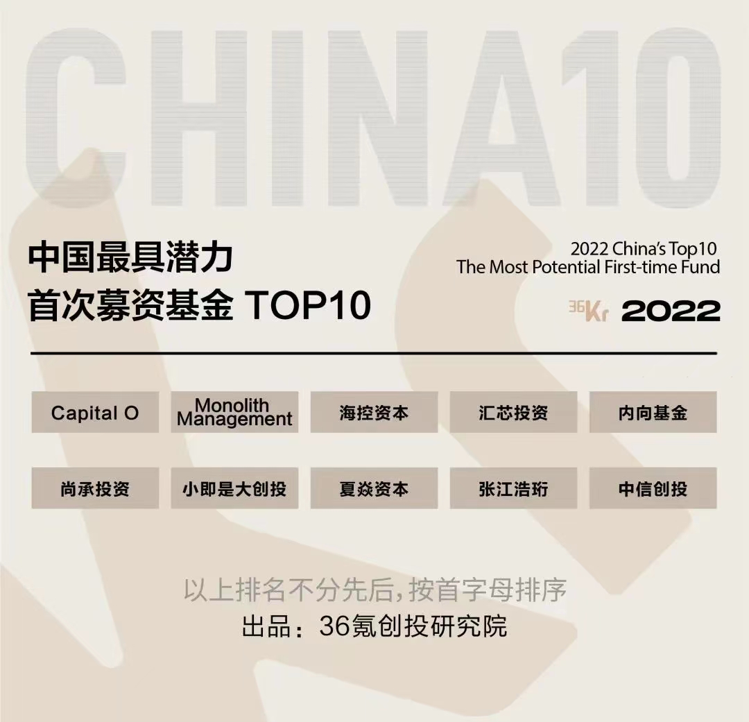 9月21日,36氪“2022中國基金合伙人未來峰會”在杭州舉行,會上揭曉了2022年度中國基金系列榜單,??刭Y本榮獲「2022年度中國最具潛力首次募資基金TOP10」榮譽(yù),收獲行業(yè)權(quán)威認(rèn)可。